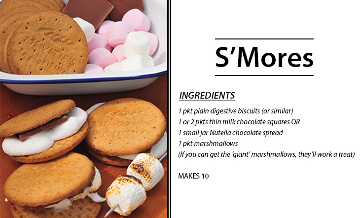 Viv’s hint: Another more ‘modern’ way to make S’Mores is to assemble the biscuits with the marshmallows and chocolate and wrap each biscuit in some foil and place that either in the fire on some embers, or in a hot oven (preheated to 180°C) and bake for 5 – 6 minutes, or until the marshmallows and chocolate have heated and softened.