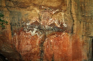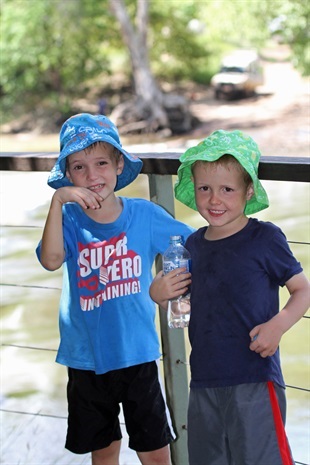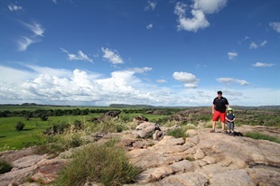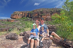 We then took the short drive to Ubirr, a series of rocky outcrops that house incredible examples of indigenous rock art, many of which date back several thousand years. It’s quite a humbling experience to think about the stories behind the art, which contain images of creation ancestors, white settlers, spirits and local animals including barramundi, goannas, turtles and wallabies to name a few. With high temperatures and the humidity making things hot and sticky, we were pushing the boundaries to get the kids up to the top of Ubirr. Lachy succumbed to fatigue about the half way mark and stayed in the cool shade of some overhanging rocks with Felicity, but Nicholas powered up the rocks in his new “4 wheel drive boots” and was soon standing atop the escarpment looking very pleased with himself, and sharing just how good his new boots were with anyone in earshot!