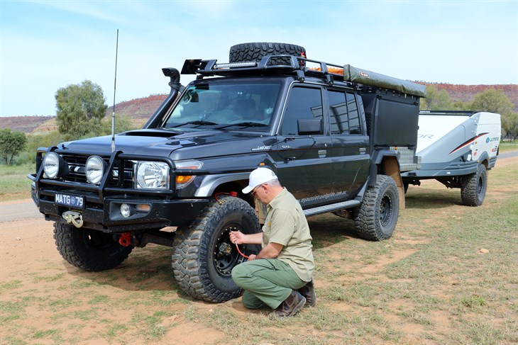 Time to reduce the tyre pressures now we’ve hit the dirt