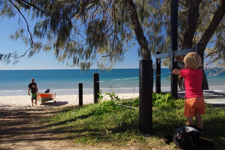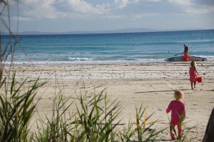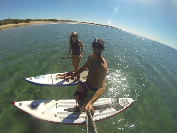 Out came our inflatable stand-up paddleboards for an exploration of the coastline. The weather was perfect with a slight tailwind assisting our voyage. Rocky point after rocky point, secluded beach after the secluded beach we meandered our way through the crystal clear water passing the occasional kayaking fisherman and pod of dolphins. The Coral Sea had turned it on for us and we were rejoicing in being kid-free for the day thanks to some friends.