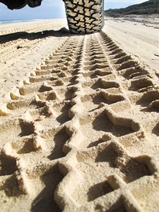 Before setting foot (or tyres) onto the beach, ensure you drop your tyre pressures. While there is no hard and fast rule with minimum pressures, it all depends on your vehicle and how heavy it is; 18 – 20 psi will get most 4WDs over most sand. Dropping down lower is doable, provided safe driving techniques are adhered to: low speeds and no sudden or hard turns as rolling a tyre off the rim is easily done.