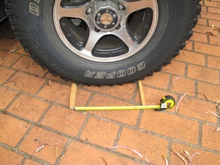 2) Measure the length of your 4WD’s tyre tread touching the ground at the lowered pressure. See photo for an easy way with 2 sticks and a tape.