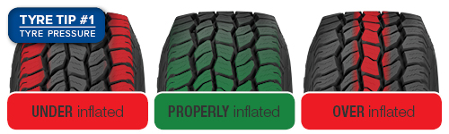 One of the simplest and most important things you can do to keep your tyres in good shape is to make sure that they are properly inflated. Failure to maintain correct tyre pressures may result in fast and uneven treadwear, improper vehicle handling, and excessive heat build-up which could result in tyre failure.