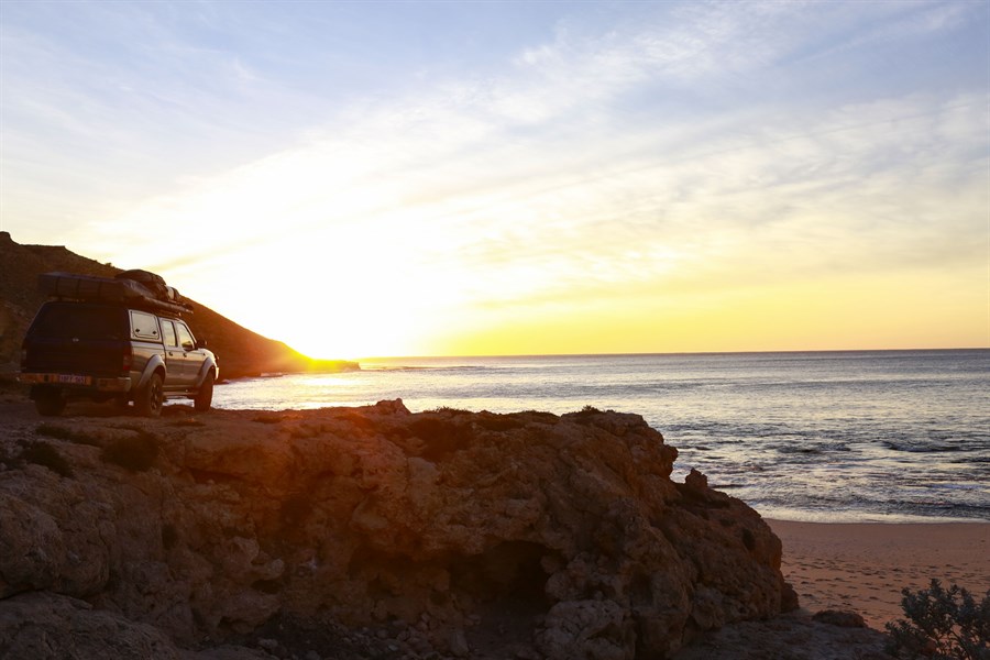 We stocked up on our supplies in the nearest town of Carnarvon before hitting the corrugated dirt roads that parallel the coastline. With two weeks of fuel, food, water and camping supplies, the car became about 400kgs heavier than usual. We let down the tyres for a smoother ride and were on our way with smiles from ear to ear.