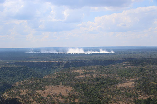So, after calming down we checked our bags, boarded the plane and headed for Victoria Falls. It was about an hour flight and as we were about 15 minutes out you could see what looked like a huge cloud on the ground.